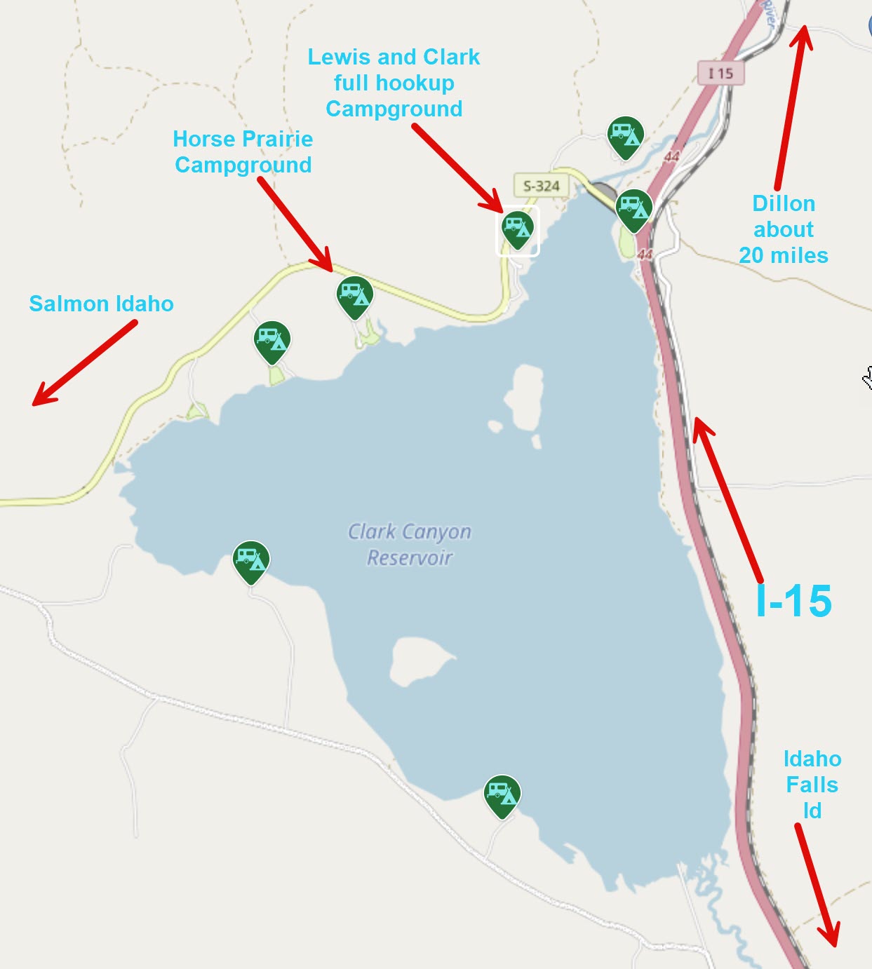 Lastly, I mentioned that ONE campground has more services. Lewis and Clark Campground at Clark Canyon offers full hookups for $30. per night. Rate may be reduced for America the Beautiful pass holders.
