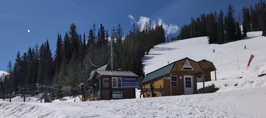 It’s Saturday April 11th as I share this end of ski season post. It’s pouring outside at the Beanery where I’m writing and enjoying a coffee. Lookout Pass Ski Area is in its final hours of operation for the season. The lifts are scheduled to stop at 1pm tomorrow, April 12th.