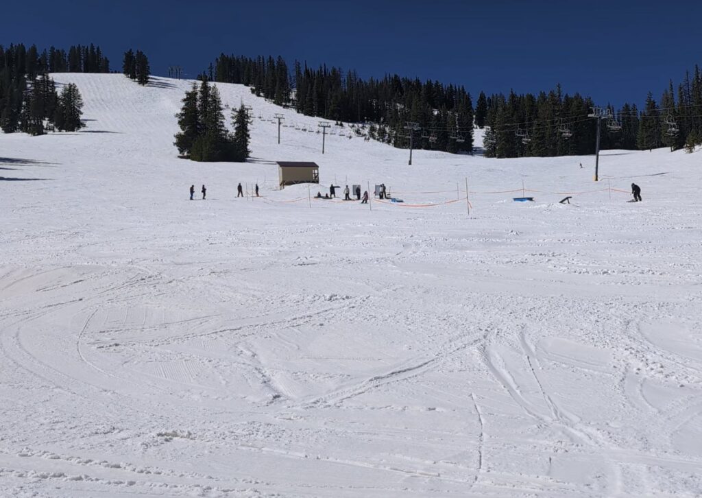Lookout Pass on Saturday April 4th – front face with a small terrain park in place