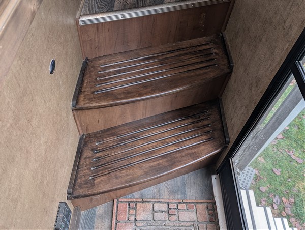 There’s been regular roof maintenance. In fact, due to an incident in early 2021 when I drove under low hanging tree branches (I’m bad at judging heights), I needed to replace the roof. Thanks to Progressive Insurance, they paid for the entire job (over $10,000.) save for $500. deductible AND allowed me to upgrade it by installing a PVC roof. Since then, I’ve been up there to apply dicor as needed. Recently, I paid a tech $200. to restore my interior steps (the wood was worn) and to completely seal all exterior seams. As with any maintenance, it is money well spent.